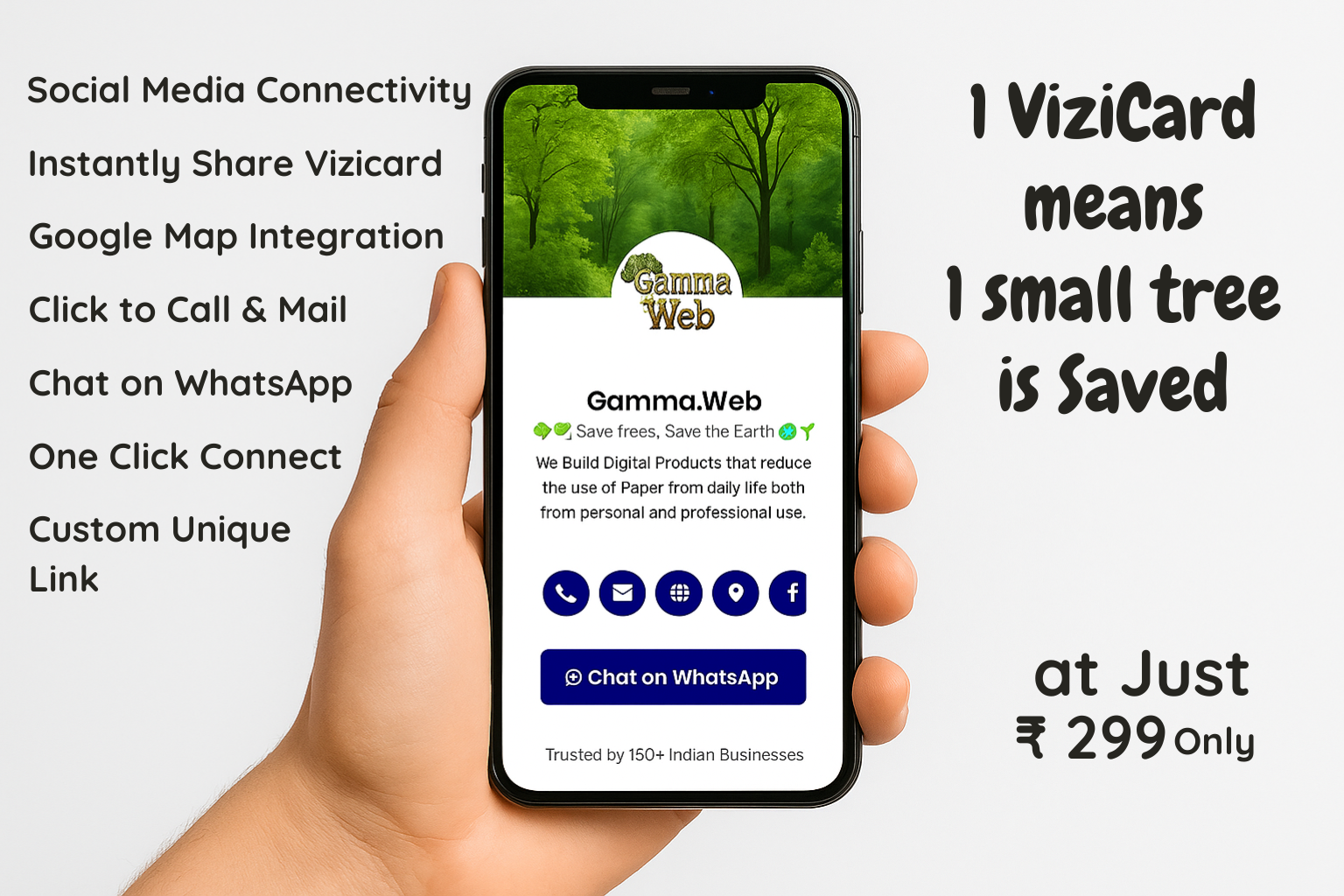 Every year, millions of trees are cut down for paper—business cards, menus, flyers, brochures, receipts…the list is endless. At Gamma Web, we are on a mission to cut the paper, not the trees. We believe in creating a more sustainable future, one that doesn’t come at the cost of our environment. Our 100% digital alternatives to everyday paper-based products help businesses and individuals reduce their carbon footprint while still maintaining the style, functionality, and professionalism they deserve. By making small changes, together we can make a big difference and help protect the planet for future generations.